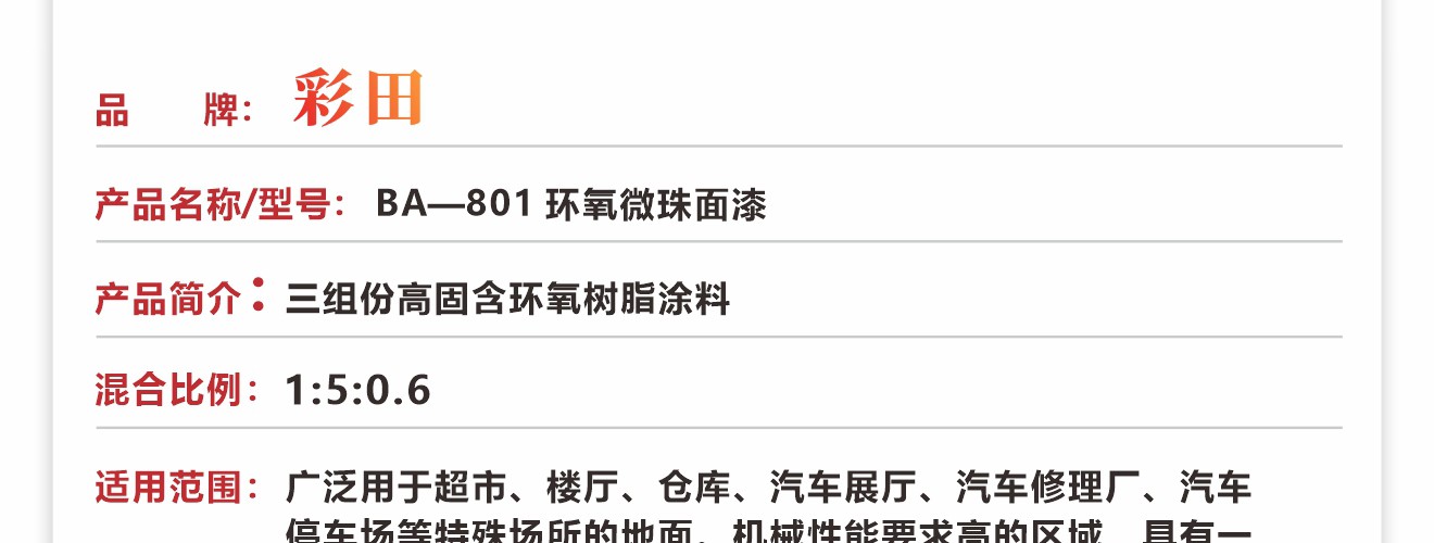 彩田BA-801環氧微珠面漆