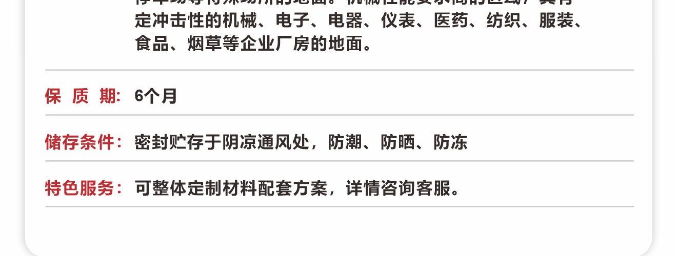1、比一般薄涂型防滑材料的耐磨性好; 2、涂層呈現顆粒紋理,止滑效果好; 3、溶劑含量低,大大改善施工環境。 4、優異的抗劃傷能力;