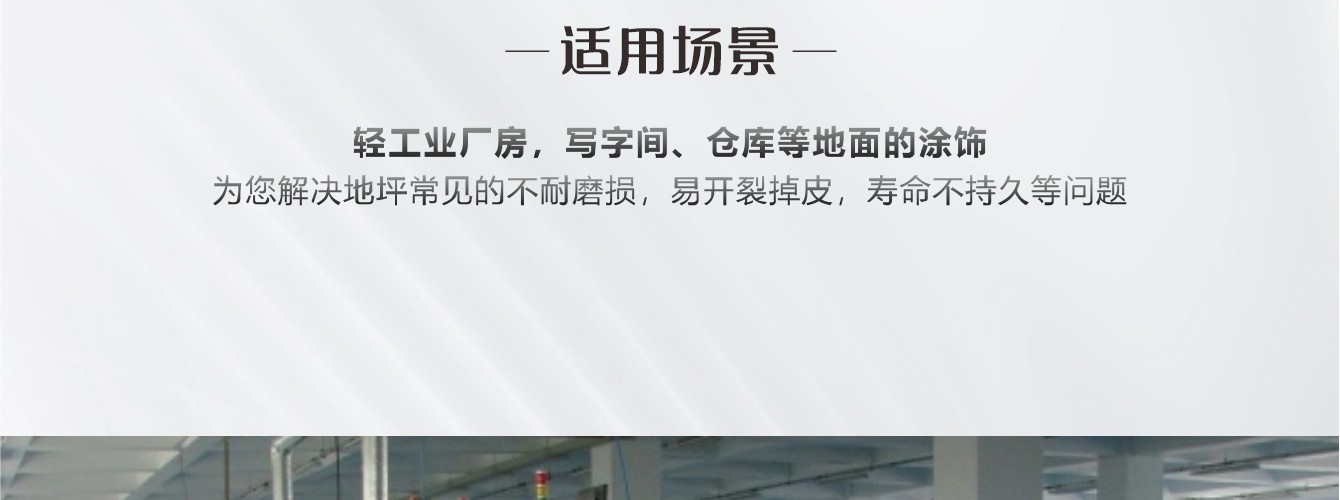常溫固化雙組份環氧樹脂漆,層光滑、光亮、豐滿度好;溶劑含量低,大大改善施工環境。適用于輕工業廠房,寫字間、倉庫等地面的涂飾。