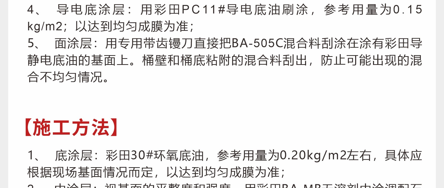 彩田BA-CFM高固含環(huán)氧防靜電中涂